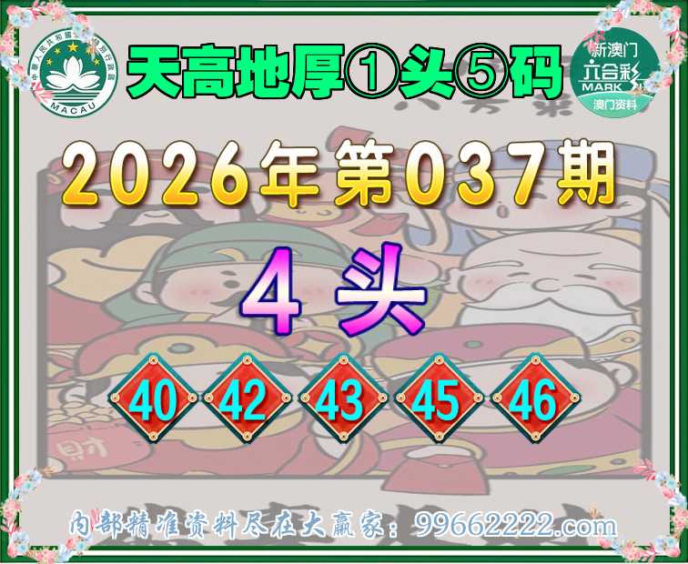 037期:【天高地厚】 📙①头⑤码📙【4头主:40.42.43.45.46】开:43准