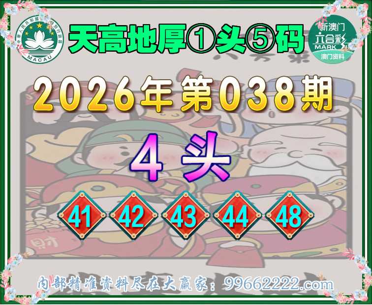038期:【天高地厚】 📙①头⑤码📙【4头主:41.42.43.44.48】开:42准