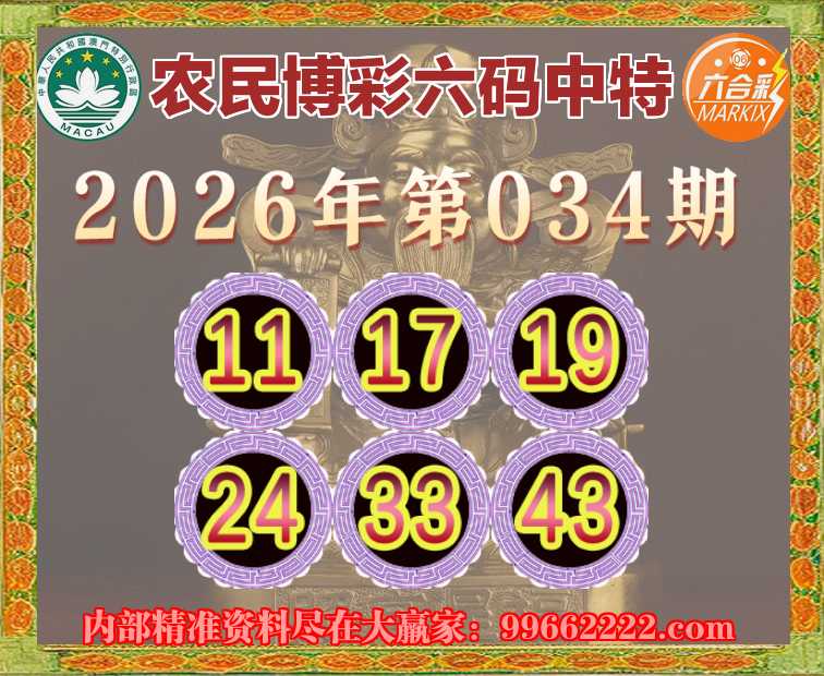 034期:《农民博彩》 ☘️六码中特☘️【11.17.19.24.33.43】开:19准
