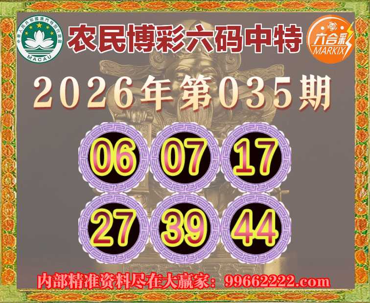 035期:《农民博彩》 ☘️六码中特☘️【06.07.17.27.39.44】开:27准