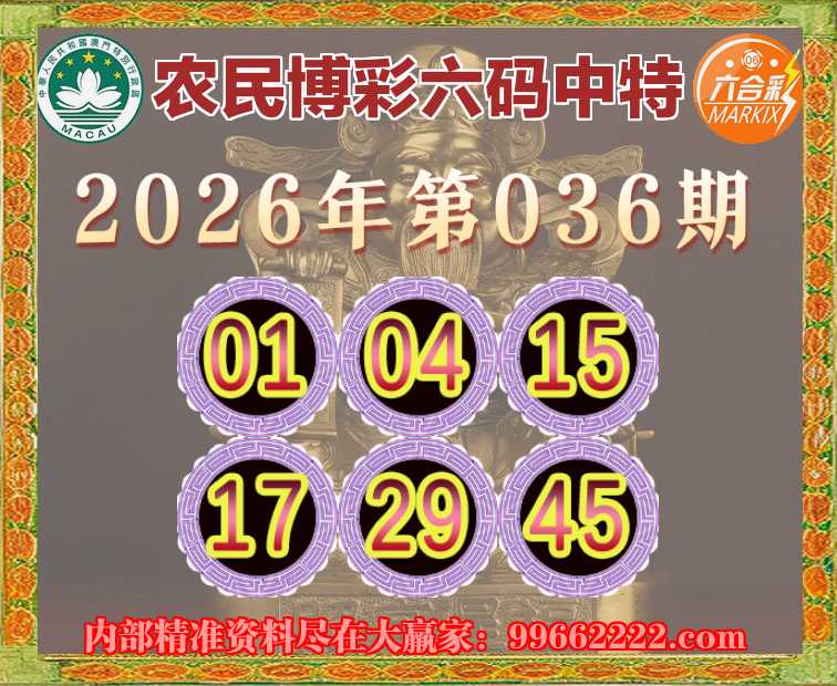 036期:《农民博彩》 ☘️六码中特☘️【01.04.15.17.29.45】开:01准