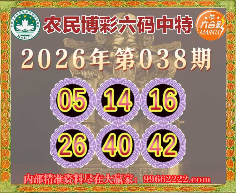 038期:《农民博彩》 ☘️六码中特☘️【05.14.16.26.40.42】开:42准