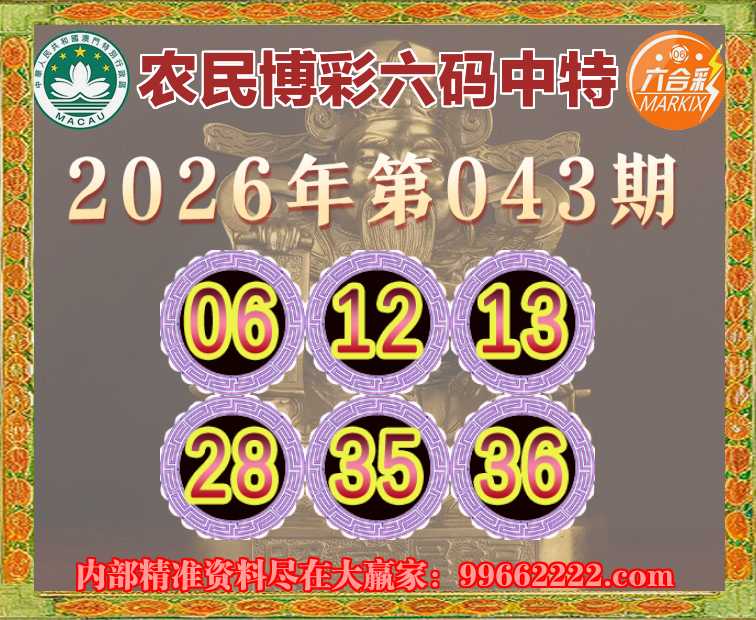043期:《农民博彩》 ☘️六码中特☘️【06.12.13.28.35.36】开:13准
