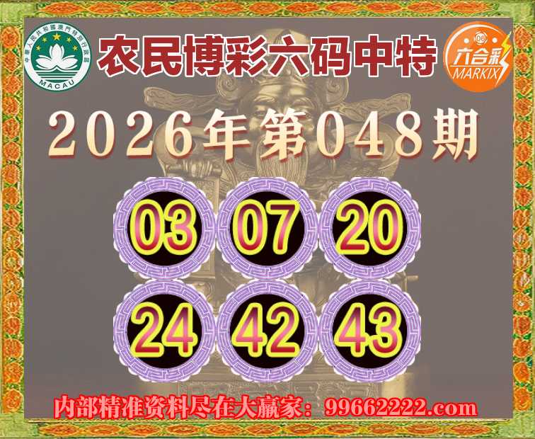 048期:《农民博彩》 ☘️六码中特☘️【03.07.20.24.42.43】开:24准