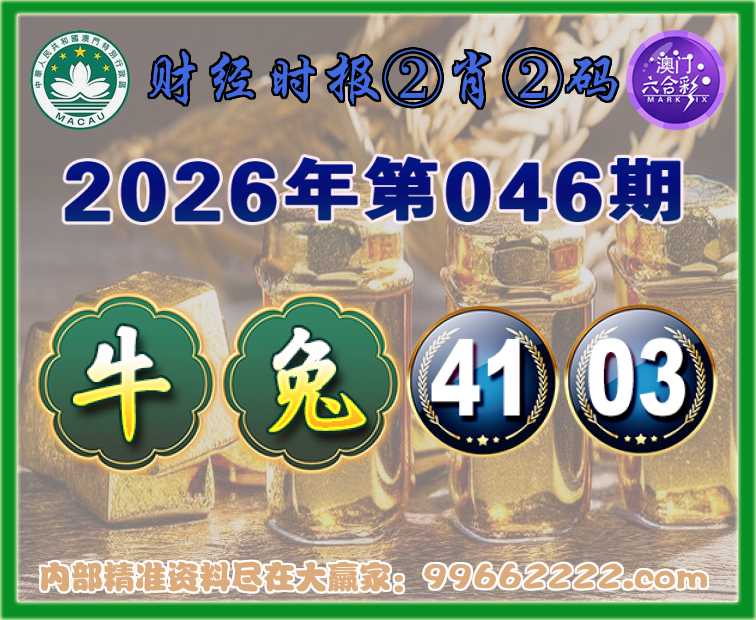 046期: 🧣《财经时报》 🧣②肖②码🧣【牛兔】【41.03】开:兔03准