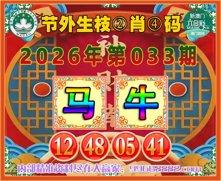 033期:『节外生枝』 🥓②肖④码🥓【马牛】【12.48.05.41】开:牛41准