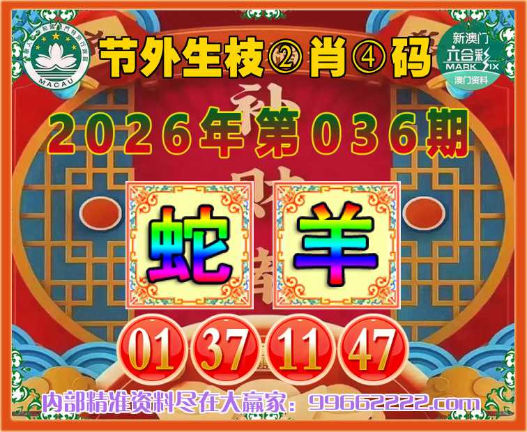 036期:『节外生枝』 🥓②肖④码🥓【蛇羊】【01.37.11.47】开:蛇01准