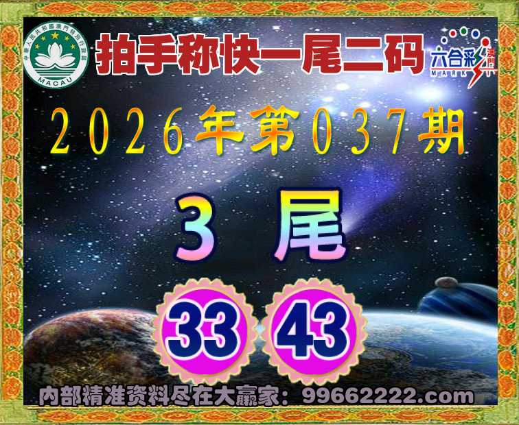 037期:🥧拍手称快🥧一尾二码🥧【3尾主:33.43】开:43准