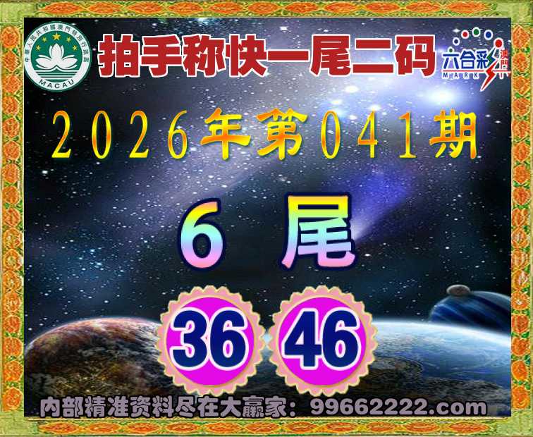 041期:🥧拍手称快🥧一尾二码🥧【6尾主:36.46】开:36准