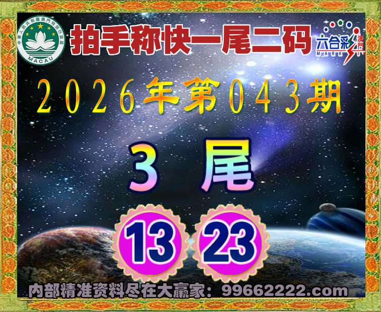 046期:🥧拍手称快🥧一尾二码🥧【3尾主:03.43】开:03准