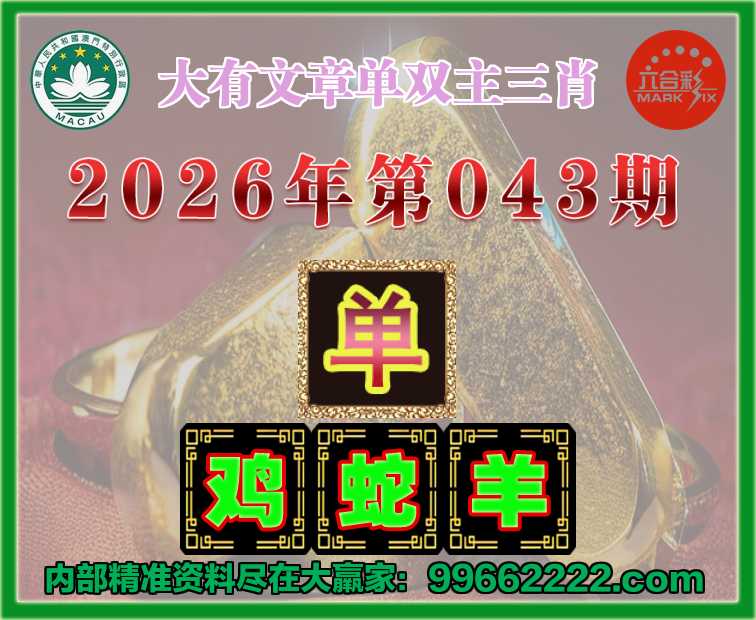 043期:『大有文章』 🎉单双主三肖🎉【单-鸡蛇羊】开:蛇13准