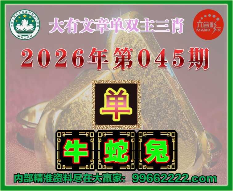 045期:『大有文章』 🎉单双主三肖🎉【单-牛蛇兔】开:蛇01准